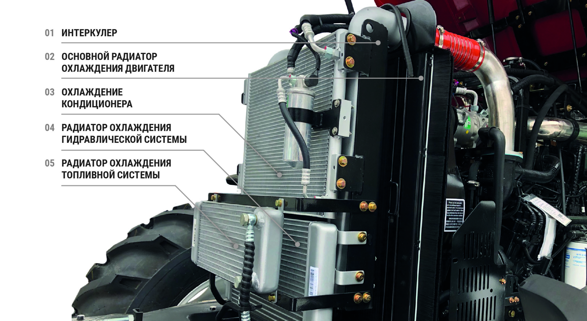 - Әр жүйе үшін бөлек салқындату радиаторы орнатылған. Радиаторларды салқындату желдеткіші орнатылған.Нәтижесінде жоғары температура жағдайында тұрақты максималды жүктемеге бейімделген трактор.