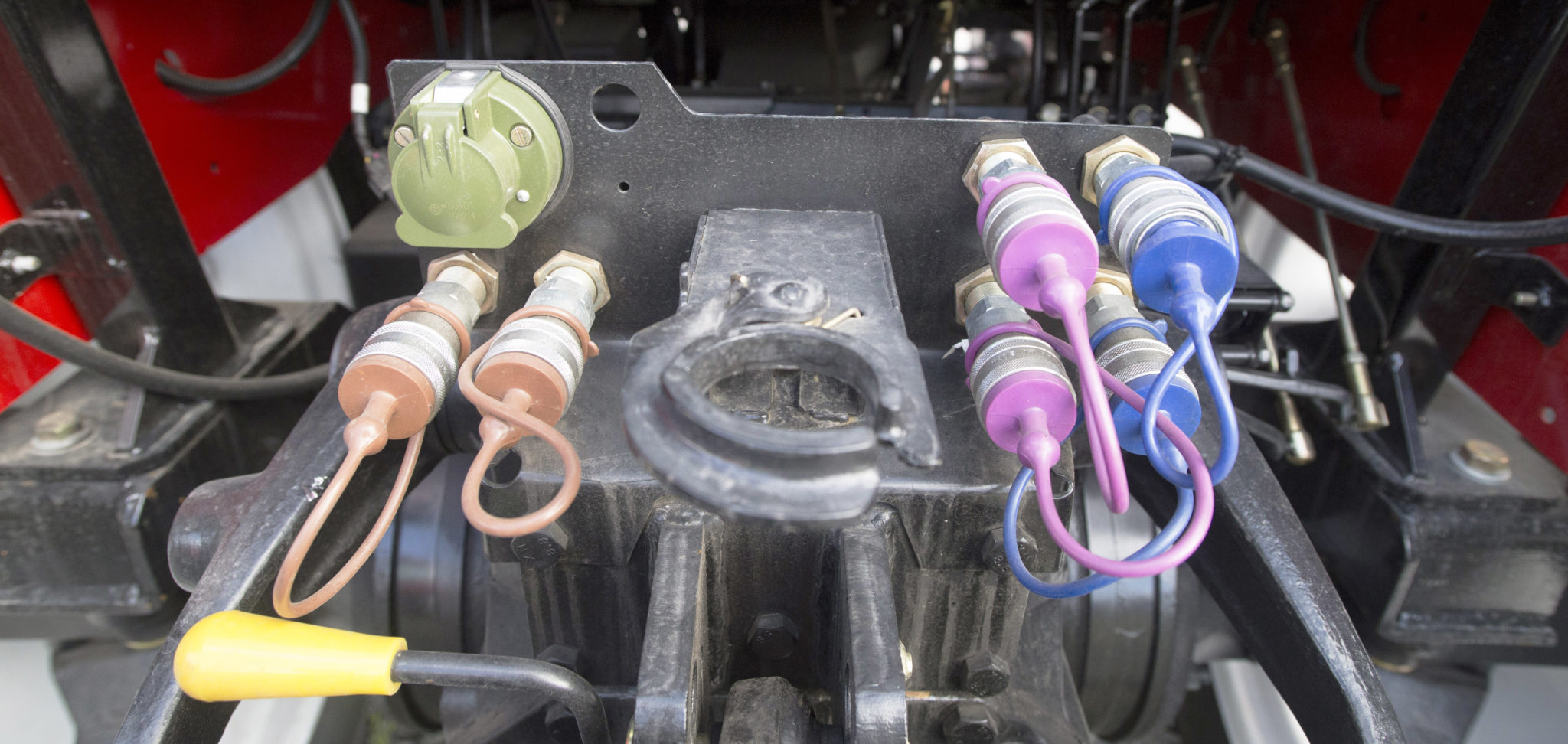 - Үш жұп гидравликалық шығыс. Үш жылдам босатылатын муфталар, олардың бірі өзгермелі режимде. Төртінші жұп гидравликалық шығуға тапсырыс беру үшін орнату, "кері ағызу" опциясы бар.